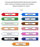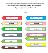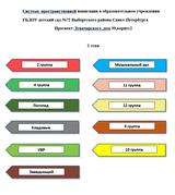 Для удобства навигации в здании детского сада разработаны навигационные схемы, планы, имеются кабинетные и групповые таблички, указатели, ориентируясь, на которые Вы легко найдете нужное помещение.